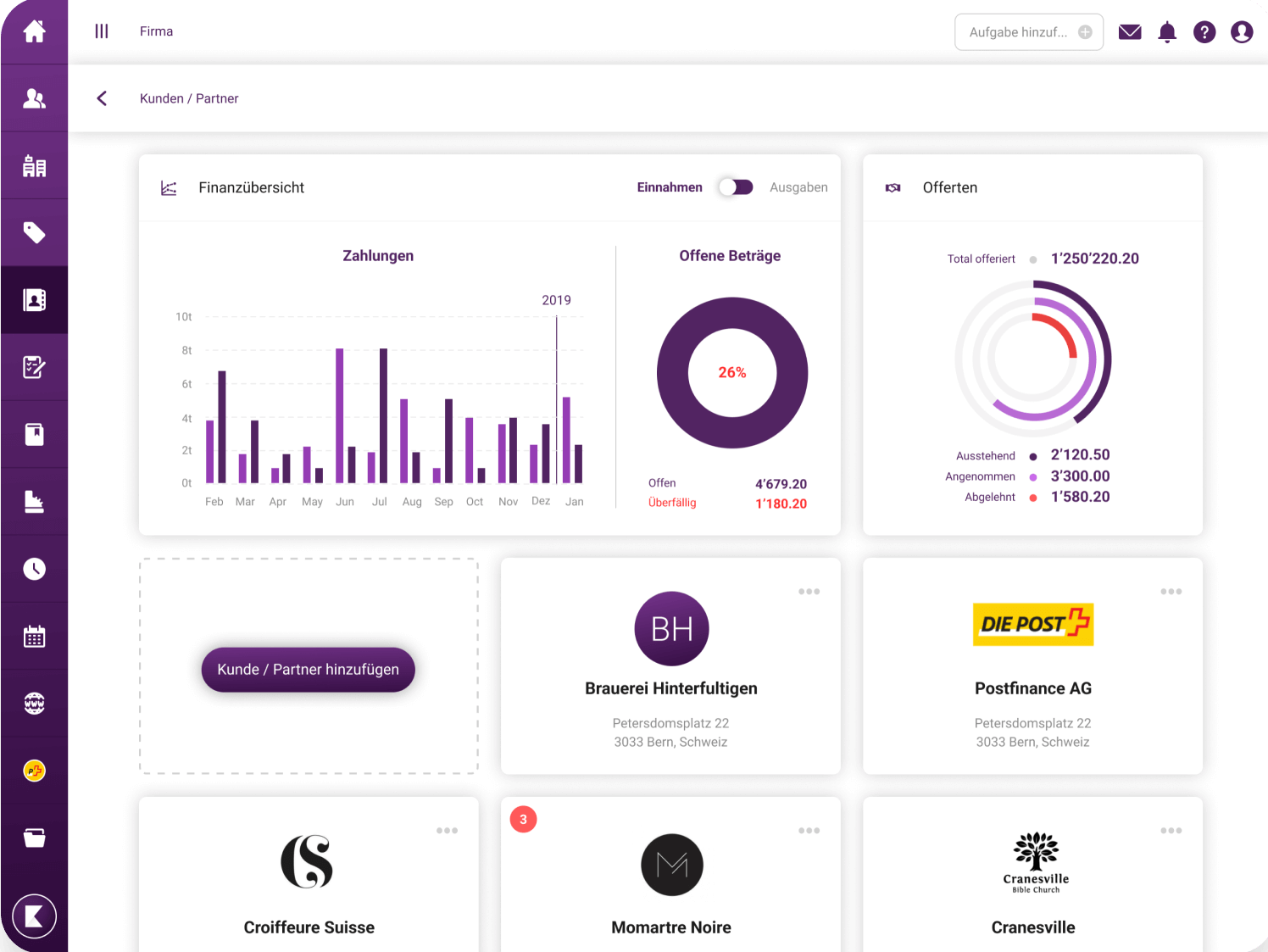 Ideal für: Kleine bis mittlere Unternehmen in der Schweiz, die eine umfassende, benutzerfreundliche Lösung für ihre gesamte Geschäftsadministration suchen. Besonders geeignet für Unternehmer, die Wert auf Automatisierung, lokale Compliance und einfache Handhabung legen.