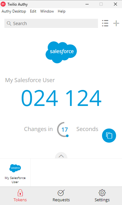 Im Authy können Sie jetzt Ihren Hinzugefügten Salesforce Account auswählen. Sie werden feststellen, dass jede 30 Sekunden ein neuer Code erstellt wird, der sich einfach über den