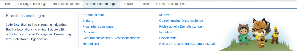Salesforce AppExchange Branchenauswahl (übersetzt durch Google-Translator)